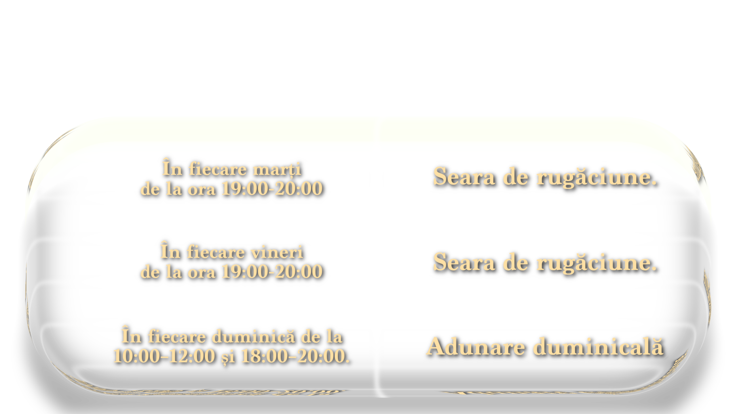 Dacă ești în căutarea păcii, speranței și unui loc unde să fii primit cu drag, te așteptăm. Vino să-L întâlnești pe Dumnezeu într-o comunitate vie, plină de dragoste și credință.
